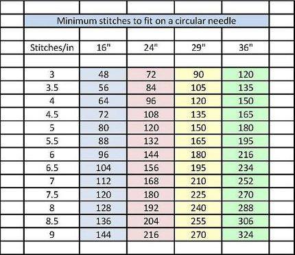 This is a neat little chart that tells what length circulars to use for a given number of stitches. I found it on my facebook feed and it was posted by AllFreeKnitting and Knit-N-Purl!