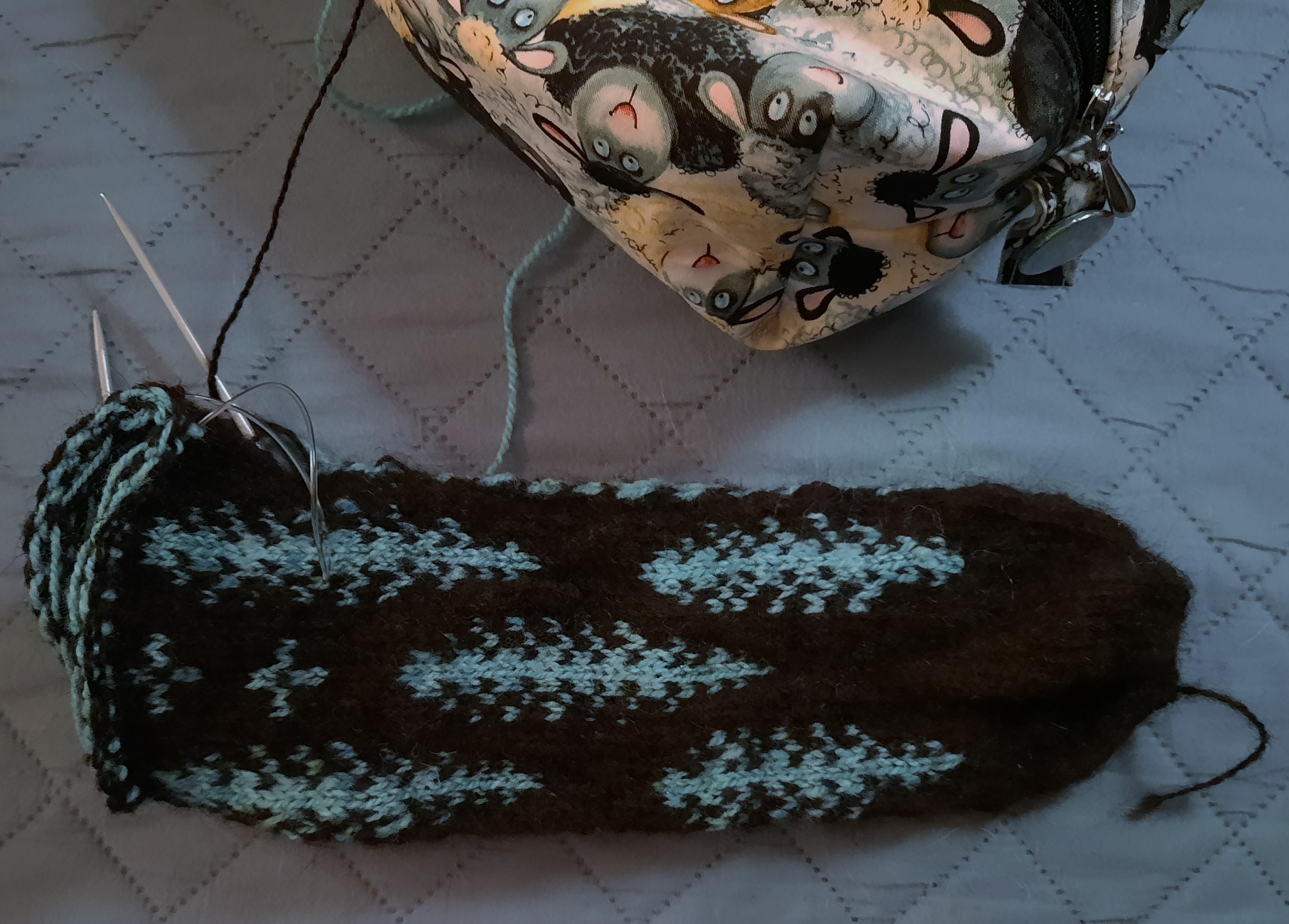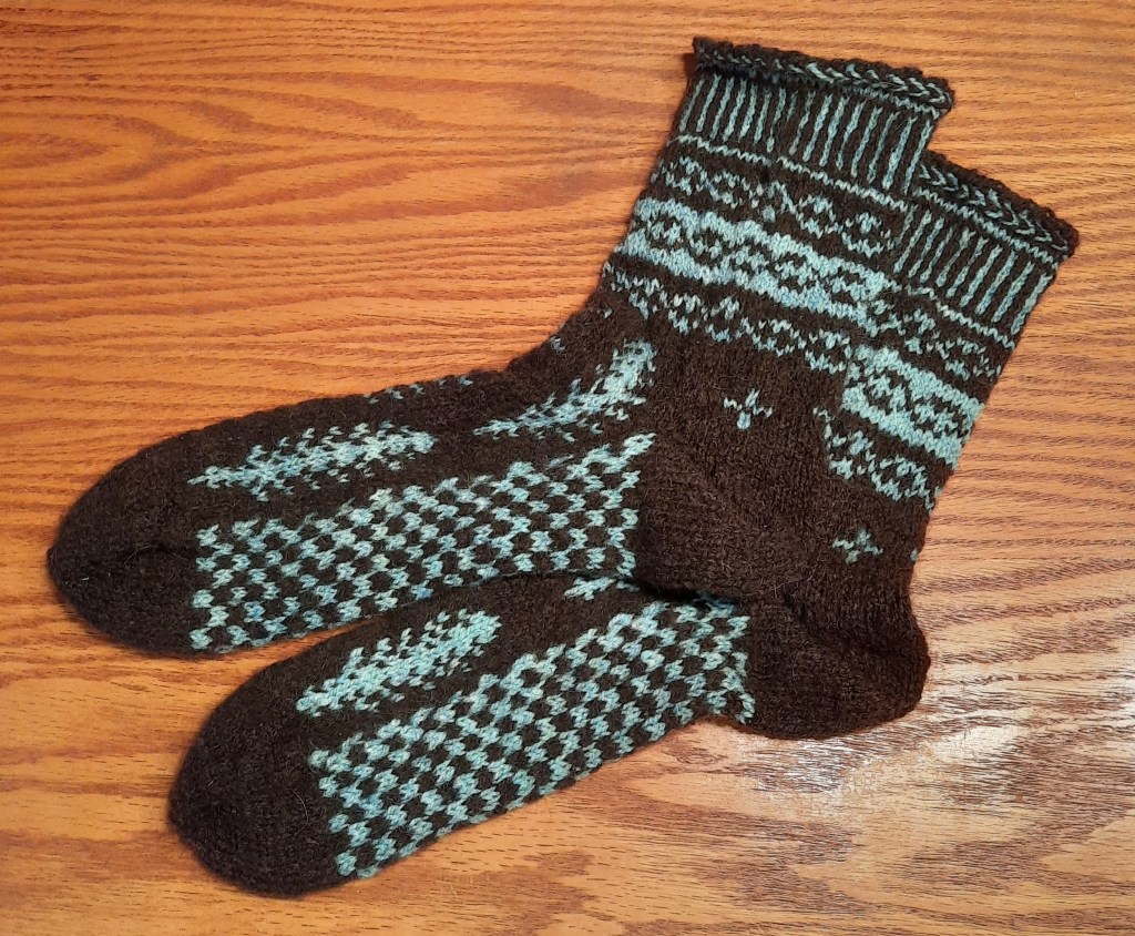 A customer contacted me on Etsy and asked me to design a pair of men’s size 13 EEE feather socks. I usually ask for 1/2 payment when I’m commissioned to design and/or custom create items. I do this because sometimes people forget about things like that, especially if it takes awhile to get it completed.