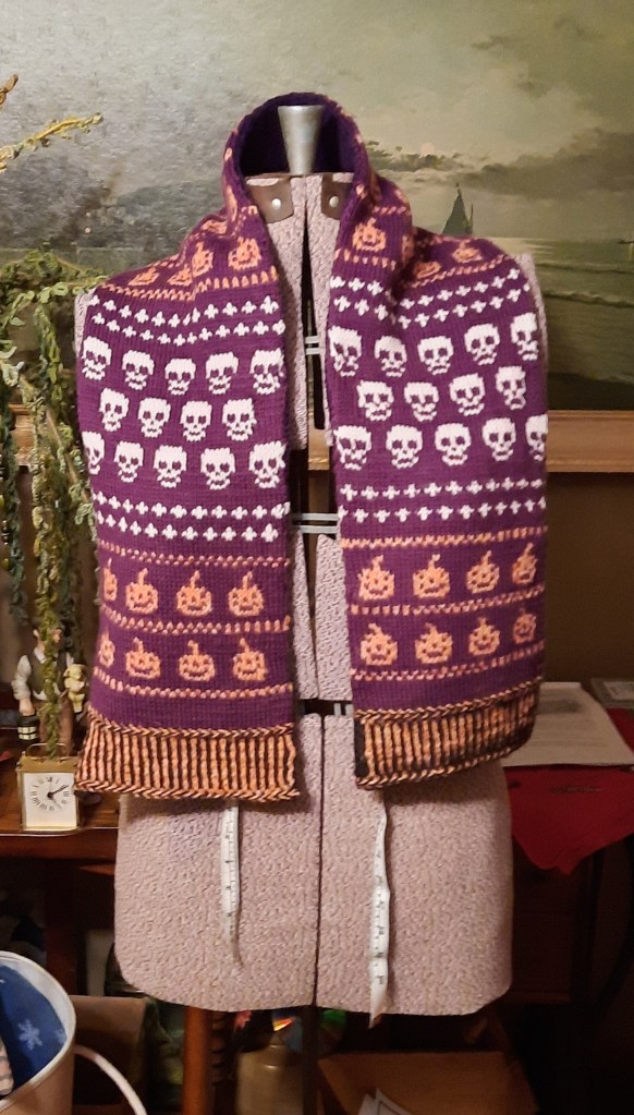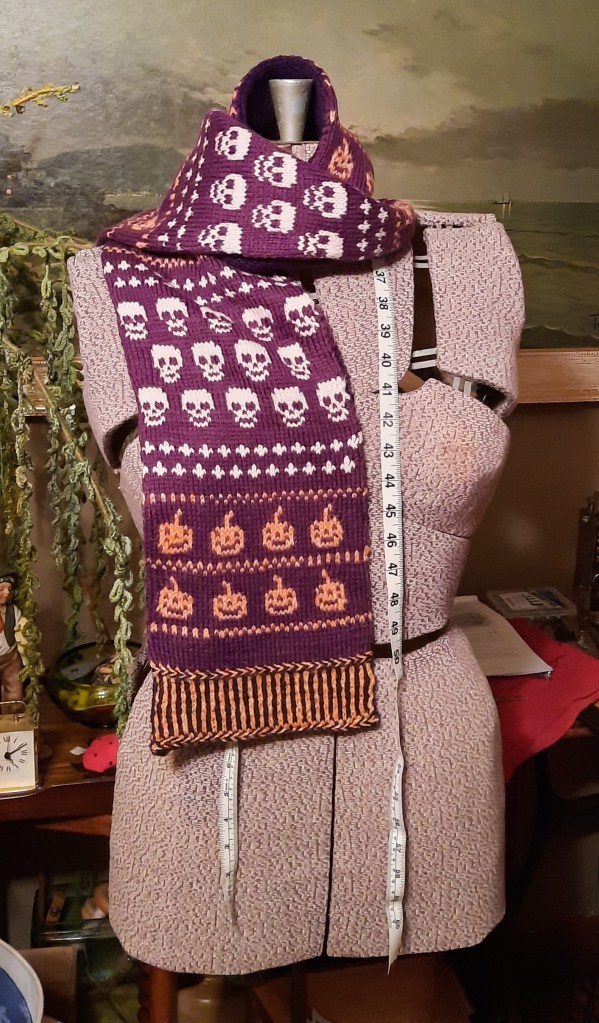 It’s been steam pressed and is ready to ship! I’ve officially finished my customer’s OOAK scarf!!! Here are the photos of the scarf on the dressmaking form.