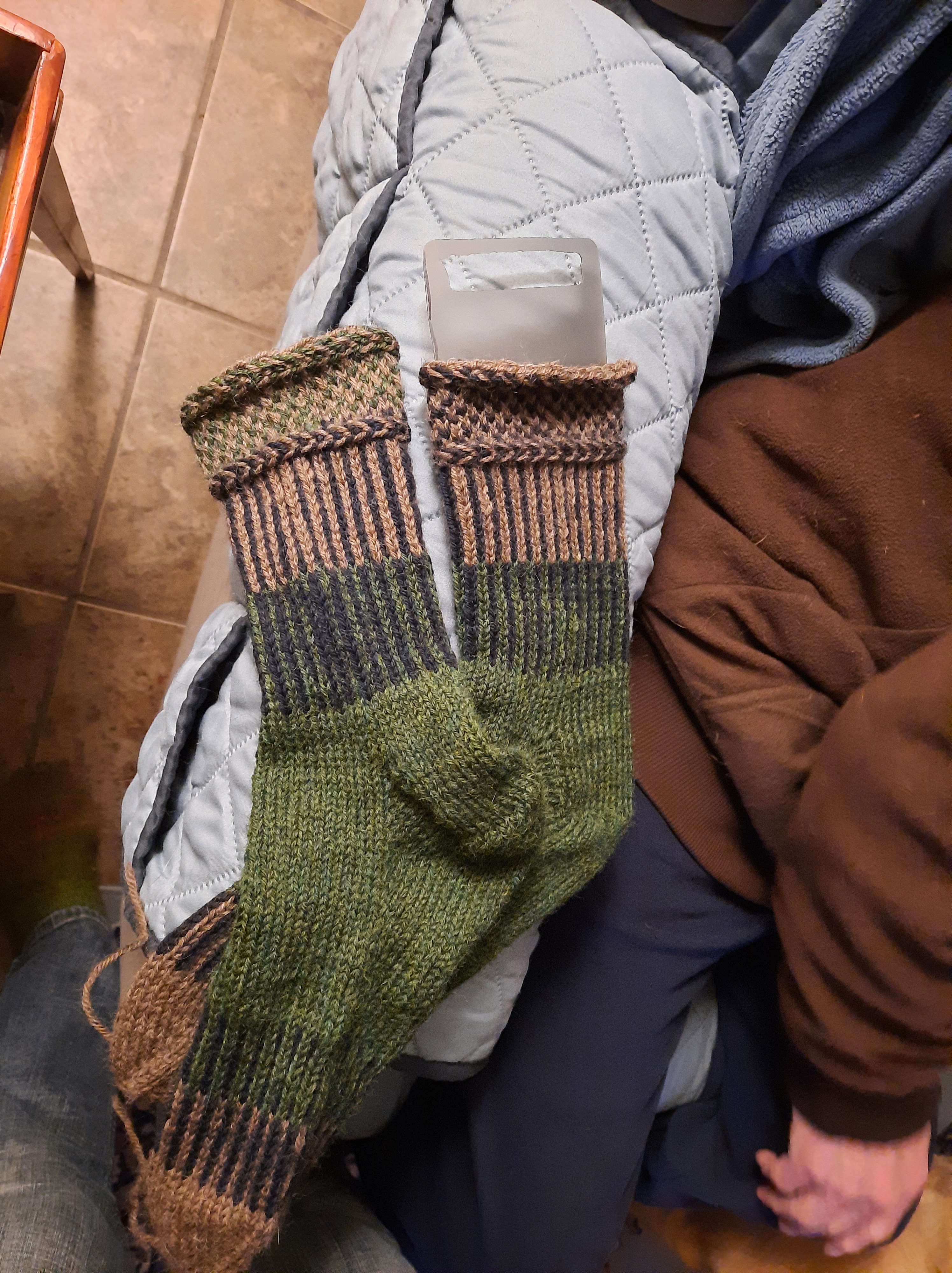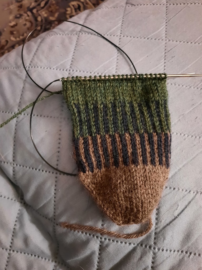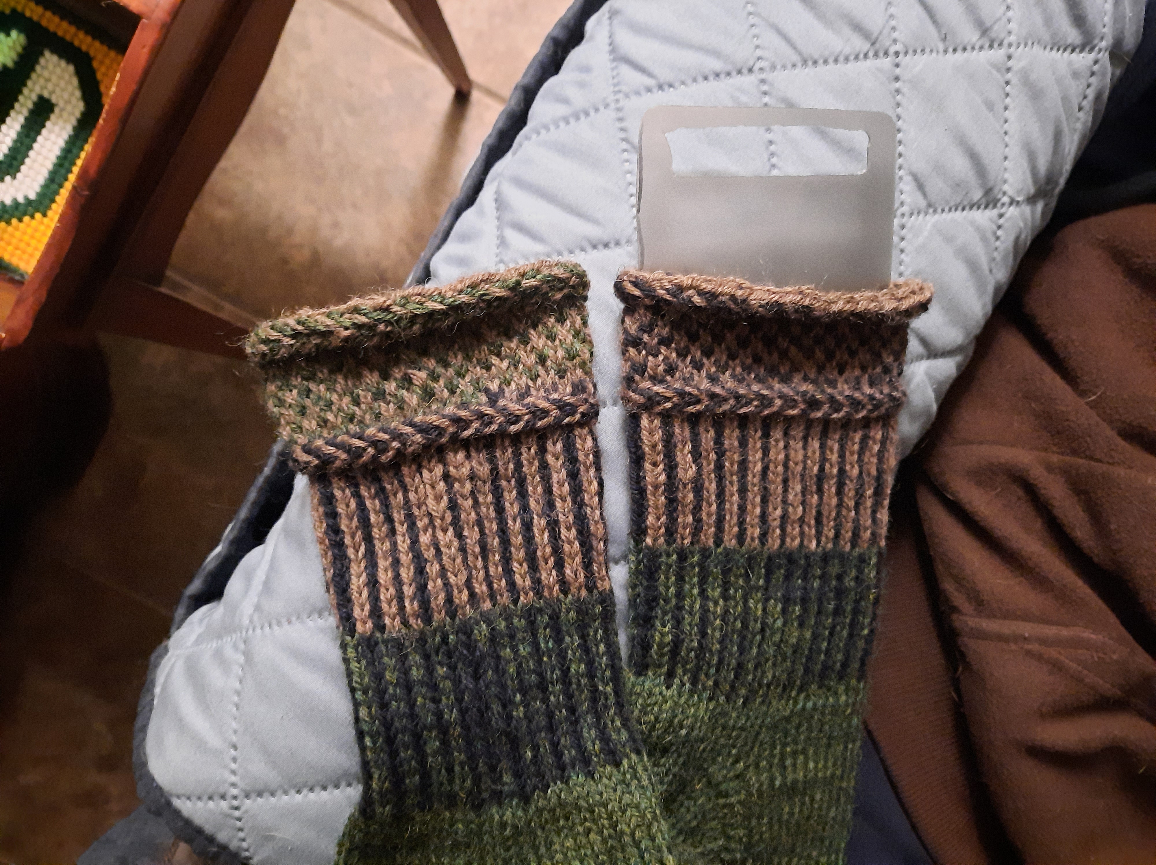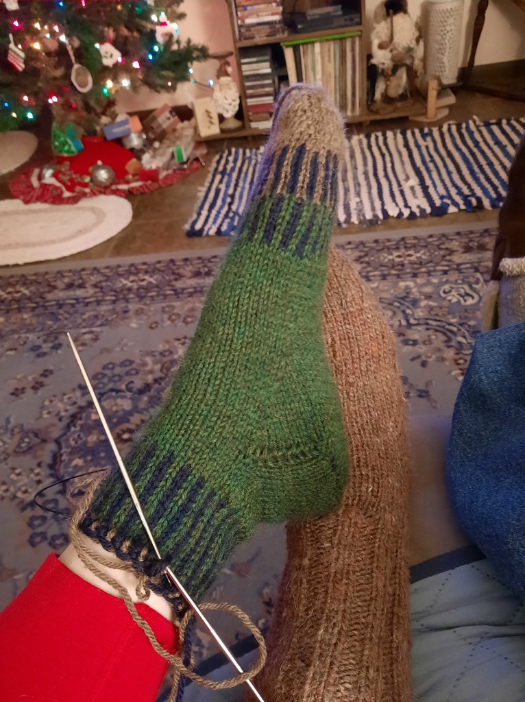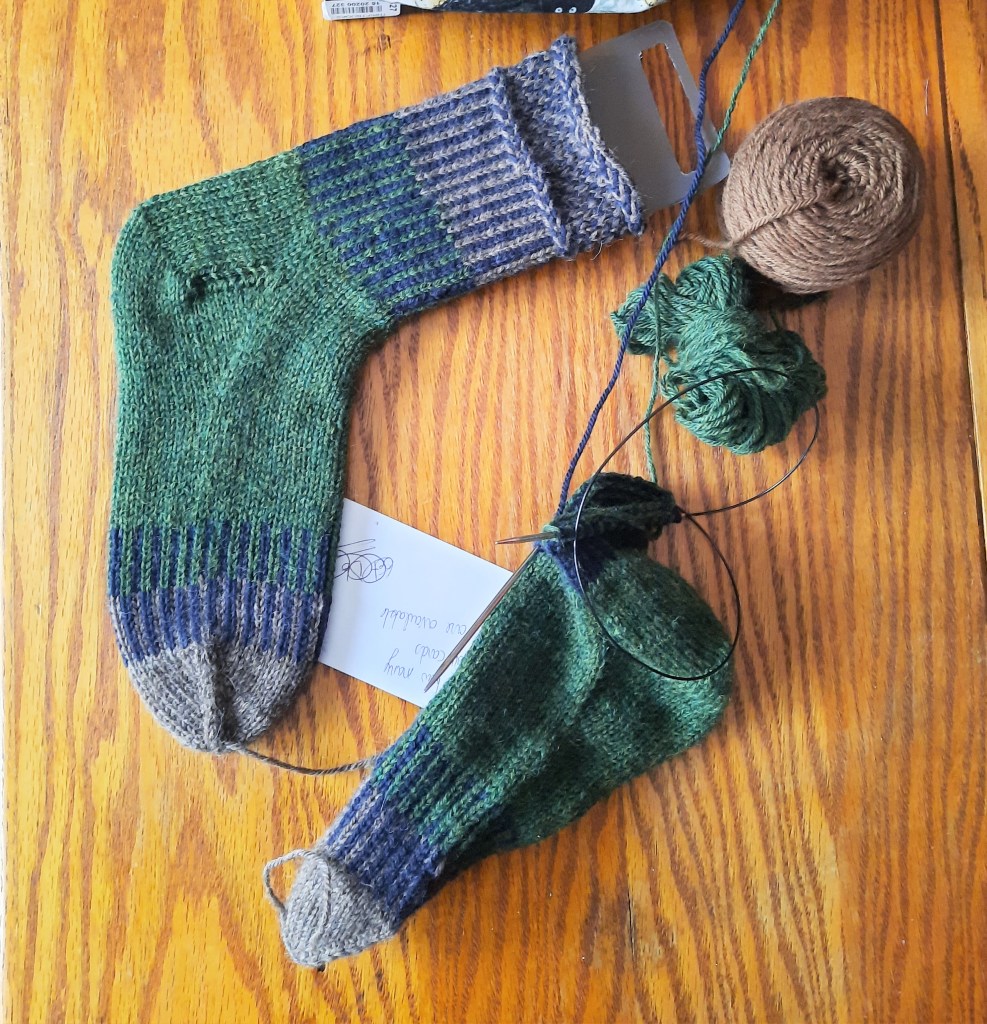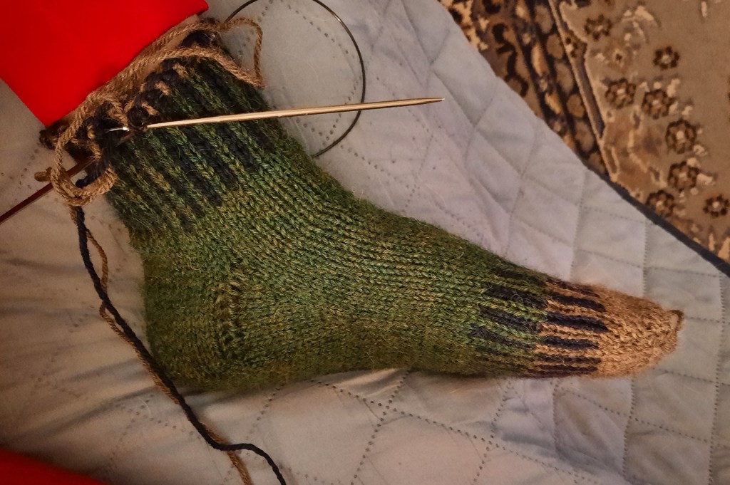 I enjoy creating my own sock designs and do so quite often. I recently learned how to knit what some people call proper gusseted socks. I’m told they fit a lot better than short-row heeled socks.