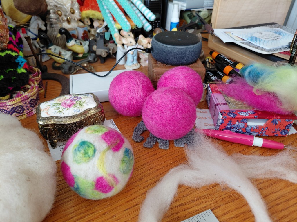 I knit most of my socks, as well as the socks I list for sale, from my handspun wool yarn that I’ve dyed. A lot of the multicolored and striped socks are knit from leftovers from both my handspun yarn, and wool yarn I’ve bought, for client projects, from Indie dyers like Atomic Fiber Co.